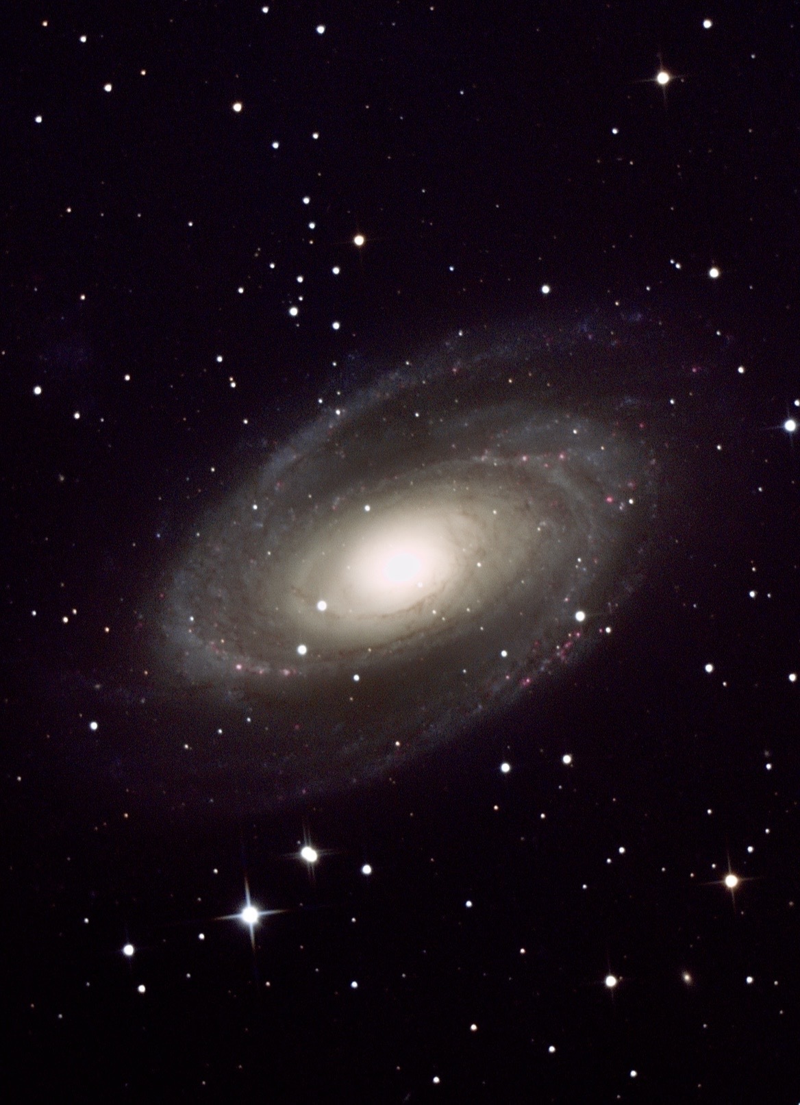 M81 Mewlon210 SXD2赤道儀 ASIAIR ガイディング カメラ ZWO 2600MC PRO Mフラットナーレデューサー (F9.3) 焦点距離1961mm=2941mm フィルター IDAS HEUIB-II ・M48S ゲイン200 冷却温度-10° 240秒 82枚スタック トリミング ステライメージ10で処理 BXT系 AI系 デコンボルーション不使用