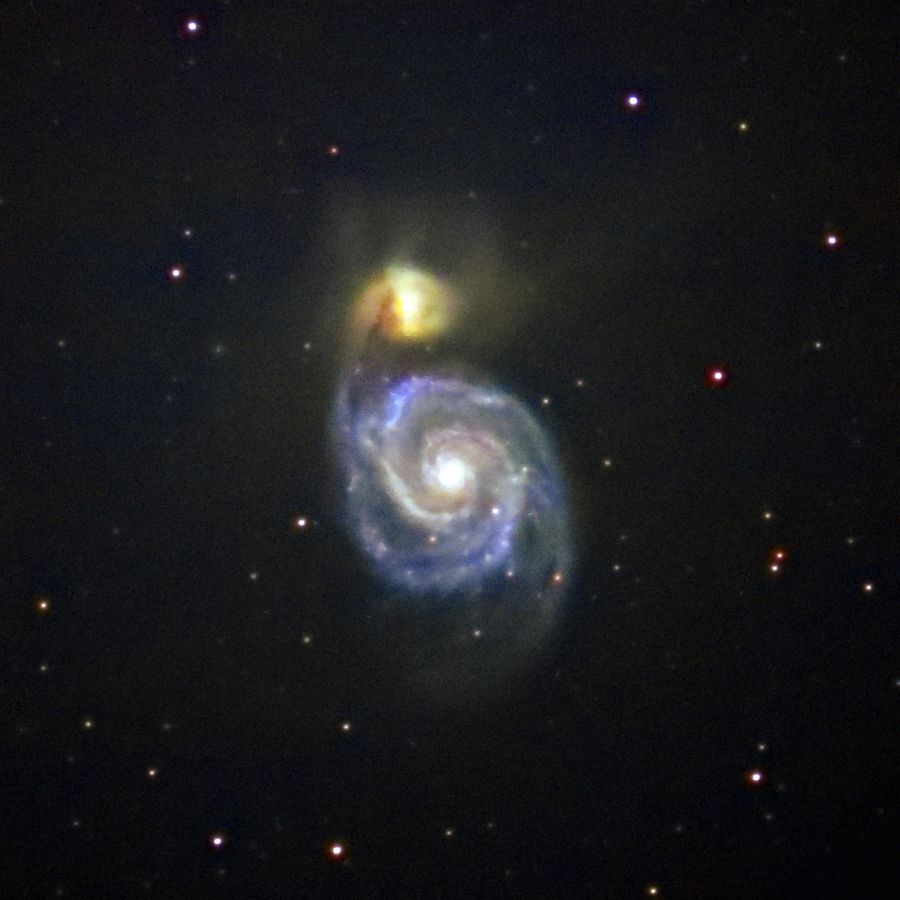 りょうけん座の渦巻銀河M51(NGC5194)です。伴銀河のNGC5195の周りの恒星流は良く写ります。(片山 徹)