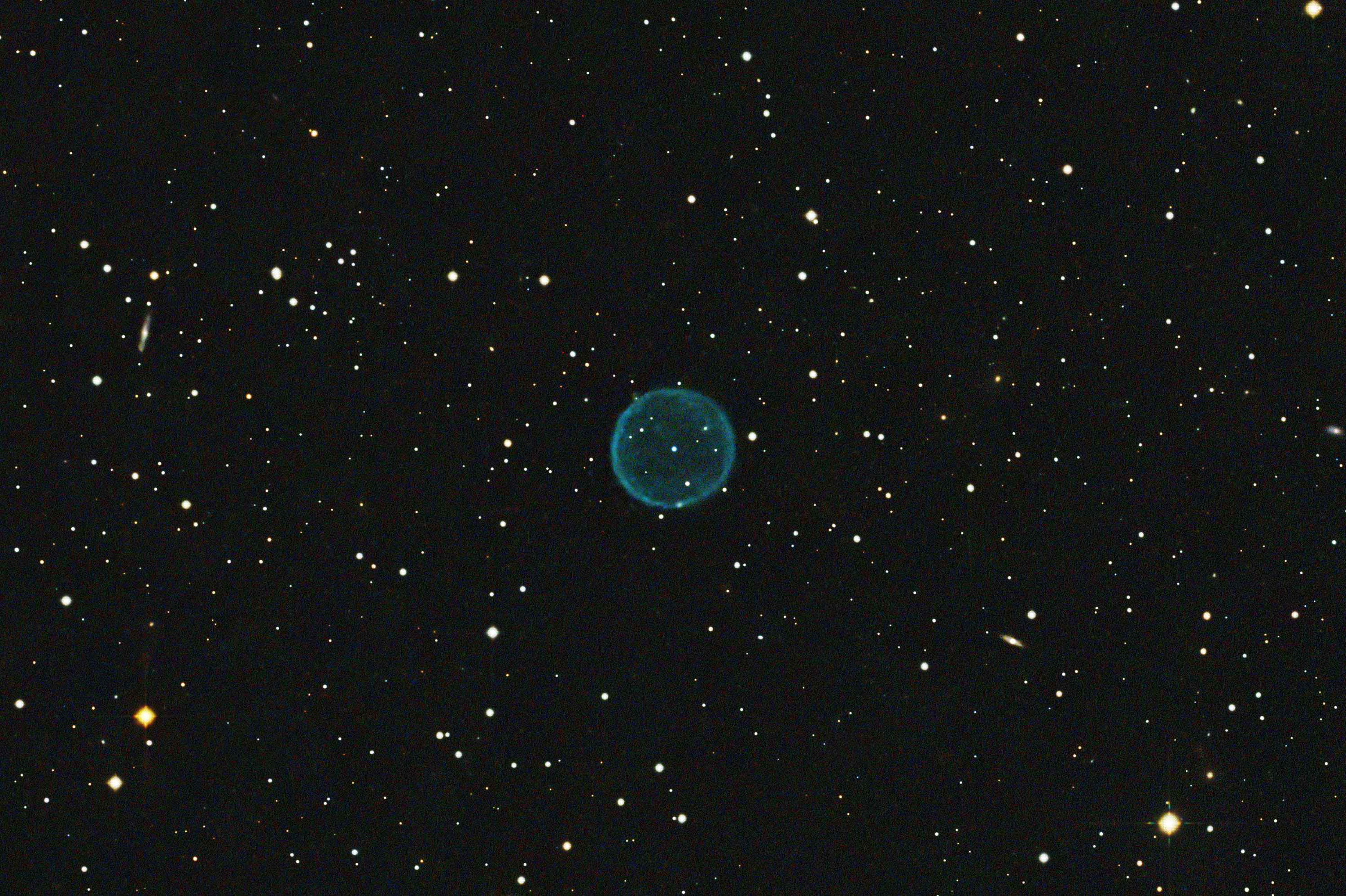 完全な球殻状で青い色が美しい惑星状星雲ですが、視直径が小さく表面輝度も暗いため強めに画像処理を施さないといけません。