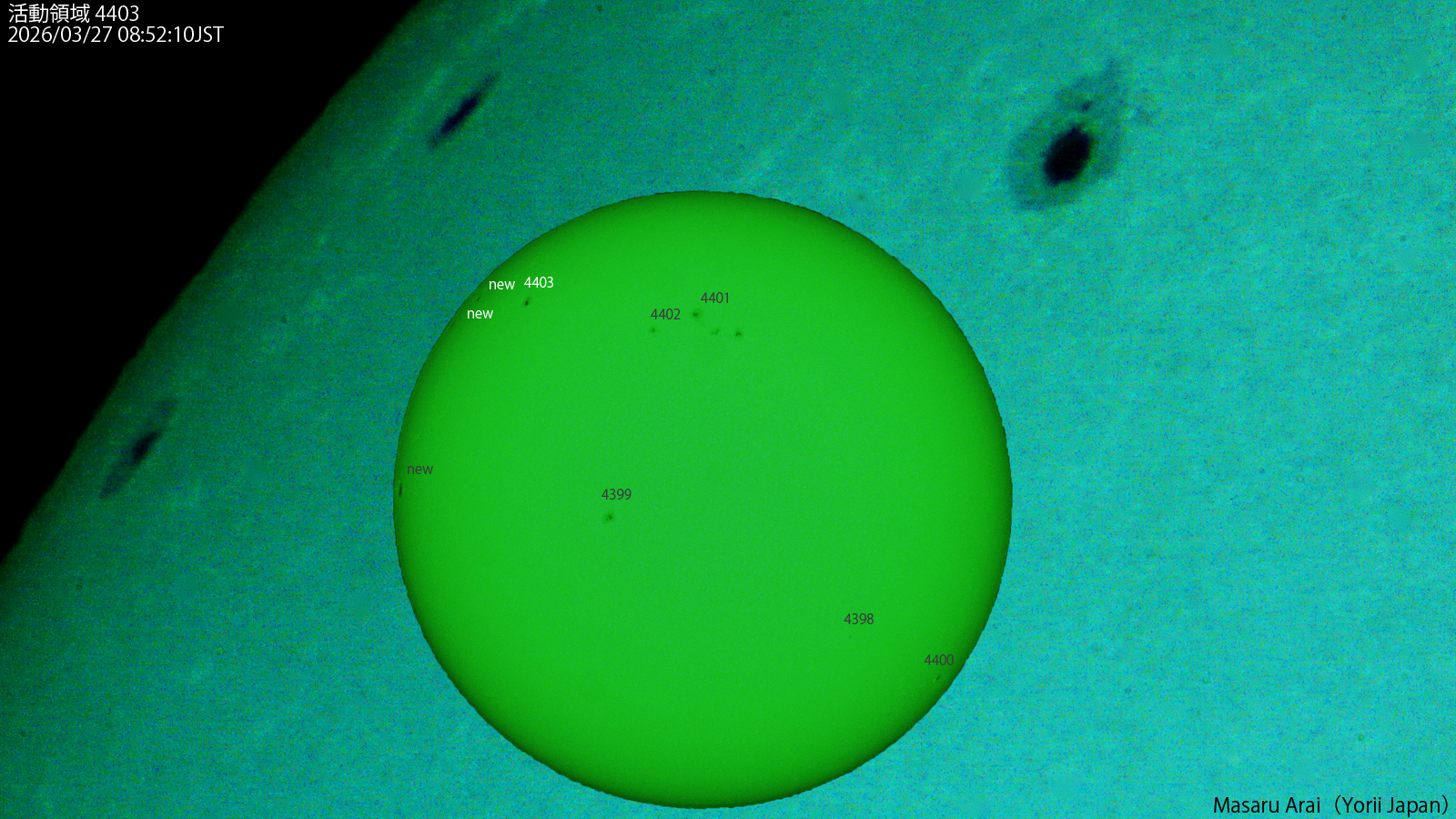 SE120L+DMC-GH1よる 4403 ( Hsx/Hsx ) です。 NICT情報:活動領域4403で、26日15時23分JSTにM3.9/1Nフレアが発生しました。