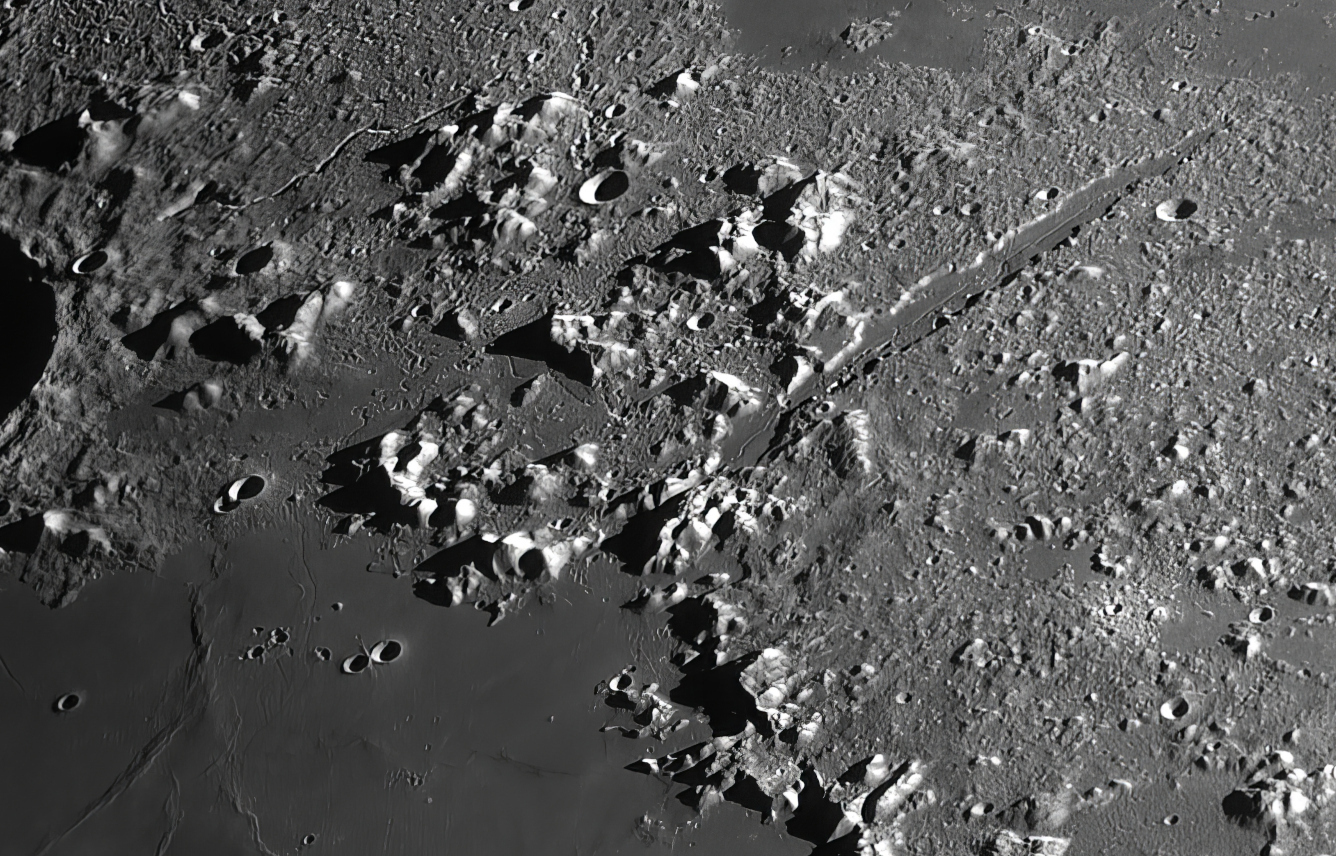 アルプス谷を撮影する最適な月齢ではありませんでしたがその存在は分かります