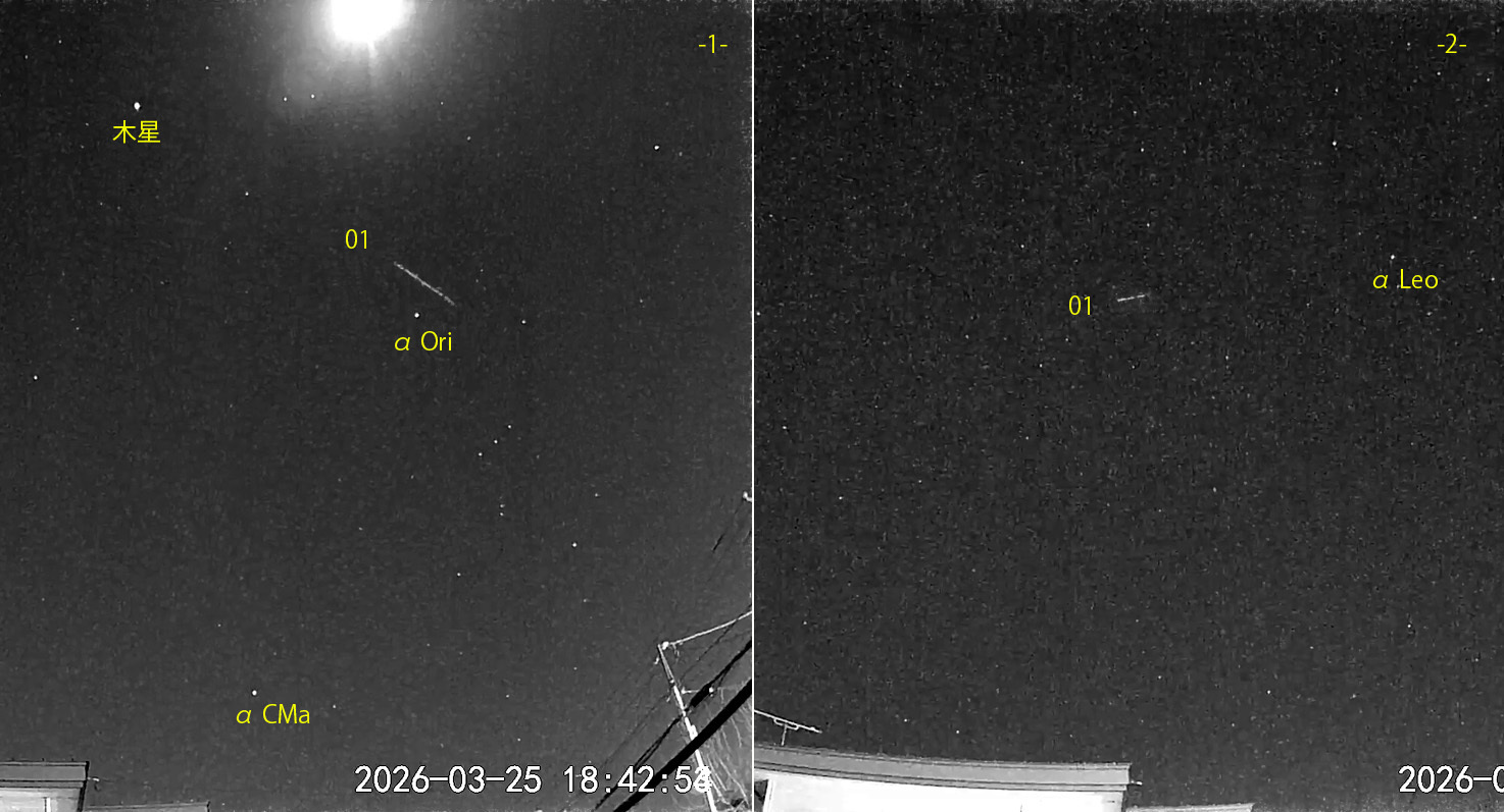 1) 18:42の1コマを、2) 22:39の1コマを処理しました。快晴で透明度も良い夜でした。 出現した順に数字と記号を始点付近に記入。tは痕traceあり。