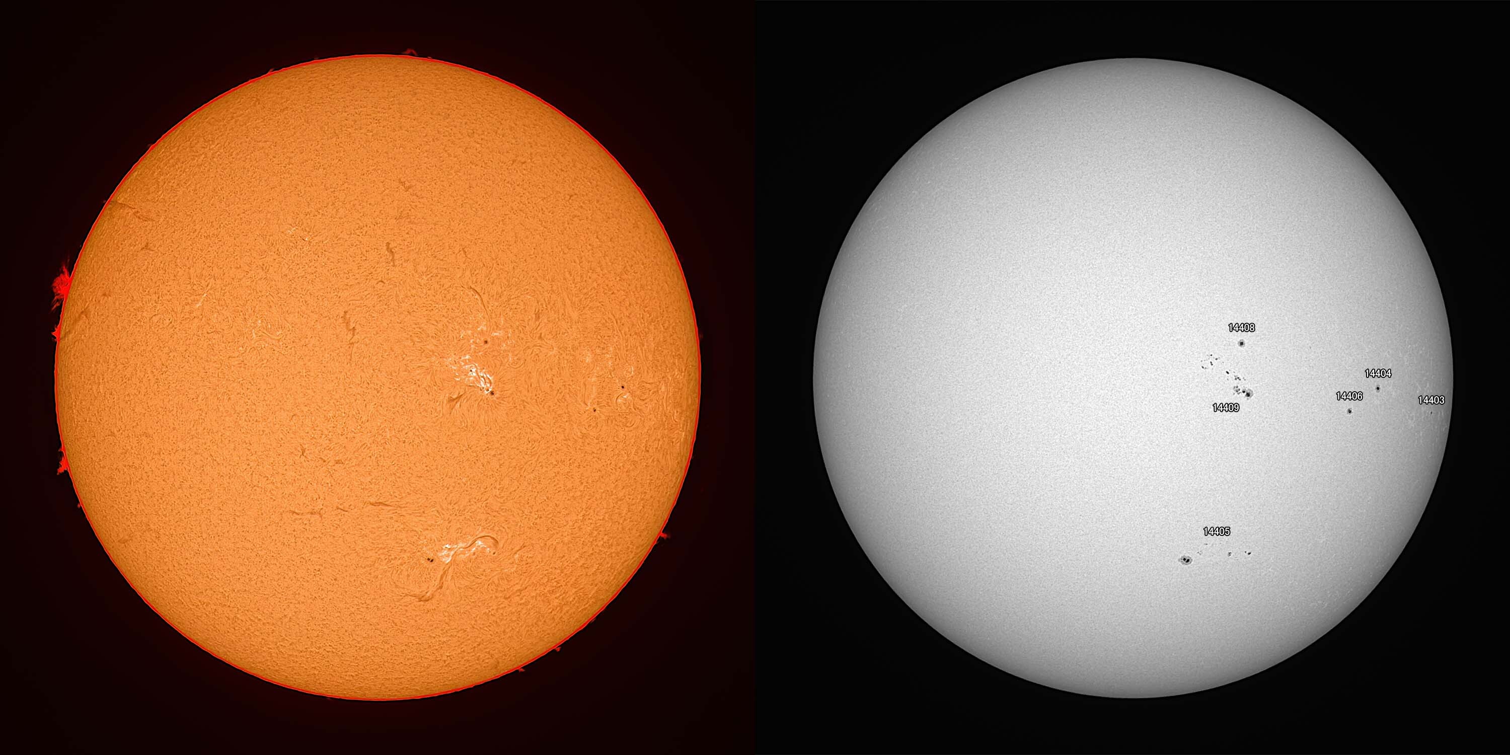 光球面:FireCapture、ROI 3600x2400、Gain 100、1.65msec x1000、撮影時間 31秒/プロミネンス:FireCapture、ROI 3600x2400、Gain 300、1.65msec x1000、撮影時間 31秒