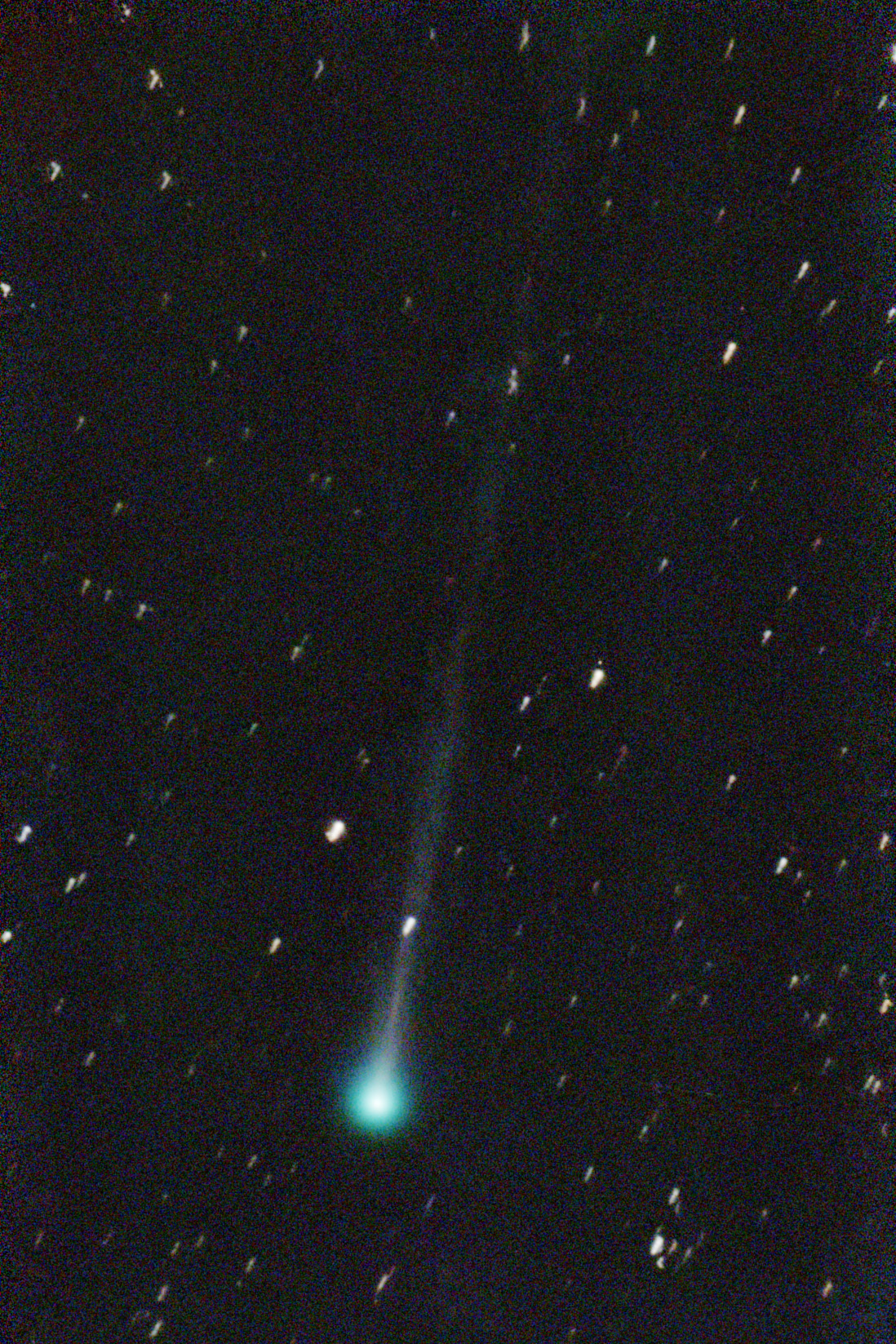 川崎市の自宅から東京方向の低空で月もあったにも関わらず、スマート望遠鏡Seestar S50で尾がはっきり写りビックリでした。 ただキツくストレッチしたら謎の縦縞が出てきたのでGraXpertで背景補正したらかなり軽減できました。