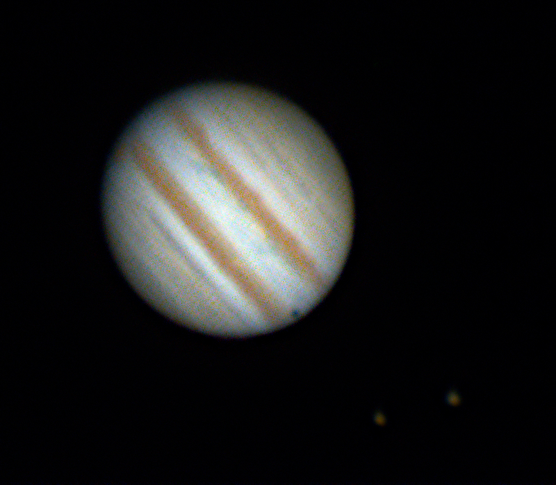 衛星イオの影も入れたくて出現してまもない大赤斑で明瞭ではありませんが、 ようやく大赤斑と複数の衛星を一緒に撮ることできました。