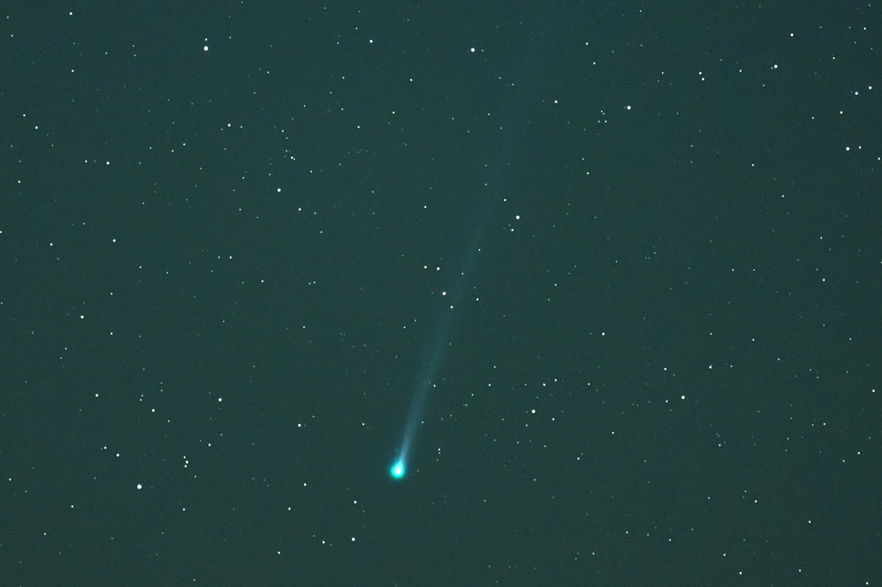 3度目で薄明開始前に撮ることが出来たパンスターズ彗星(C/2025 R3)です。 やっと長い尾をひく姿を撮ることが出来ました。 仰角は、約10度でした。