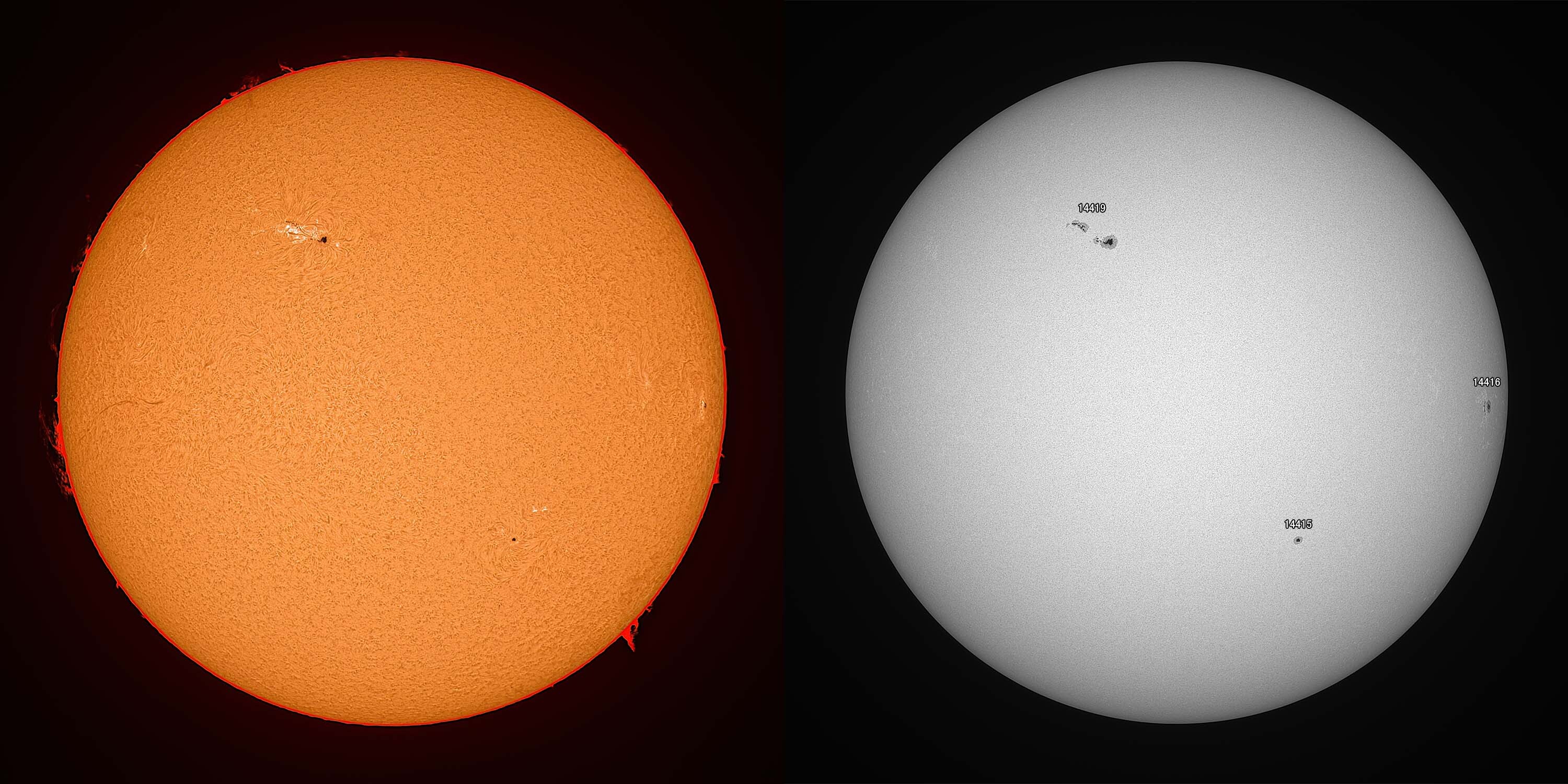 光球面:FireCapture、ROI 3600x2400、Gain 100、1.85msec x1000、撮影時間 31秒/プロミネンス:FireCapture、ROI 3600x2400、Gain 300、1.85msec x1000、撮影時間 31秒