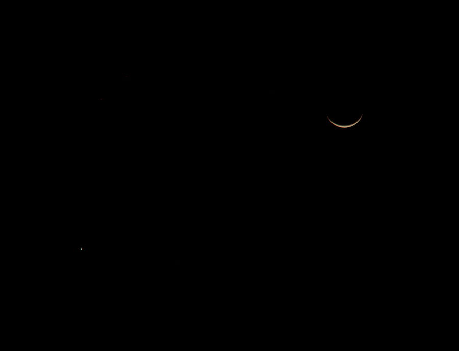 月齢の浅い下を向いたお月さんと金星のコラボ、しばらくその美しさに見惚れていました。