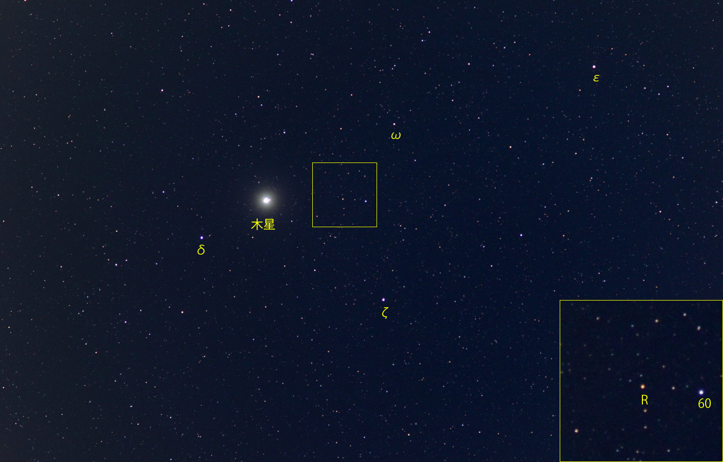 天文現象カレンダーによると6月13日ふたご座R星が極大(6.0~14.0等、周期370日)とあり、撮影。まだ薄明中です。 平沢氏AAVSO星図との比較では、Rの光度は6.5等程度に見えます。赤みがかった色調もうかがえます。
