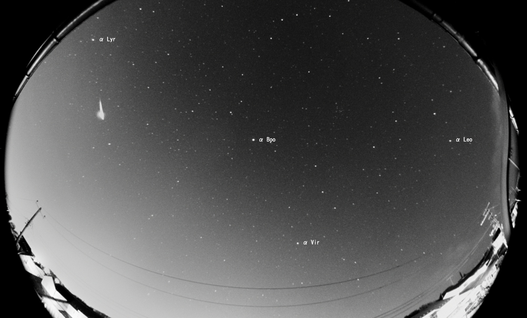 出現数が少ない群ですが,明るい流星を撮影することができました。 出現時間 23時33分02秒ころ