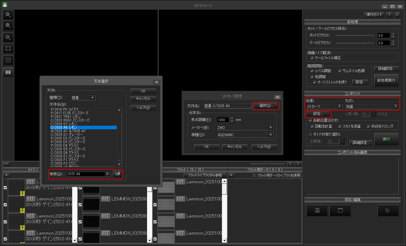 天体画像処理ソフト「ステライメージ10」を使うと、このメトカーフコンポジットが簡単に行えます。